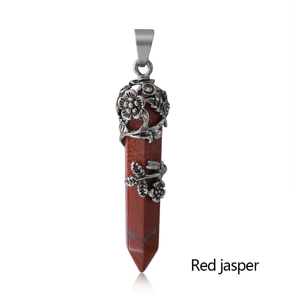 Home > 1pc Hexagonal Healing Synthetic Crystal Necklace Natural Prism Stone Pendant Flower Wrapped Pointed Quartz Yoga Energy With Chain