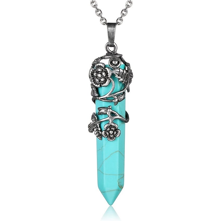 Home > 1pc Hexagonal Healing Synthetic Crystal Necklace Natural Prism Stone Pendant Flower Wrapped Pointed Quartz Yoga Energy With Chain