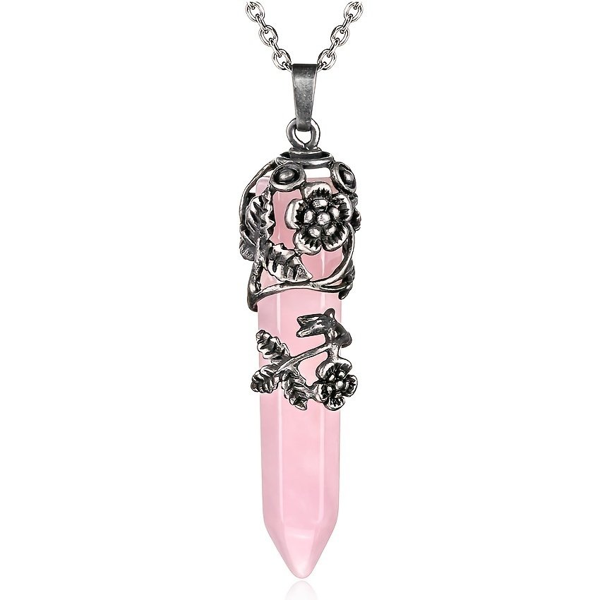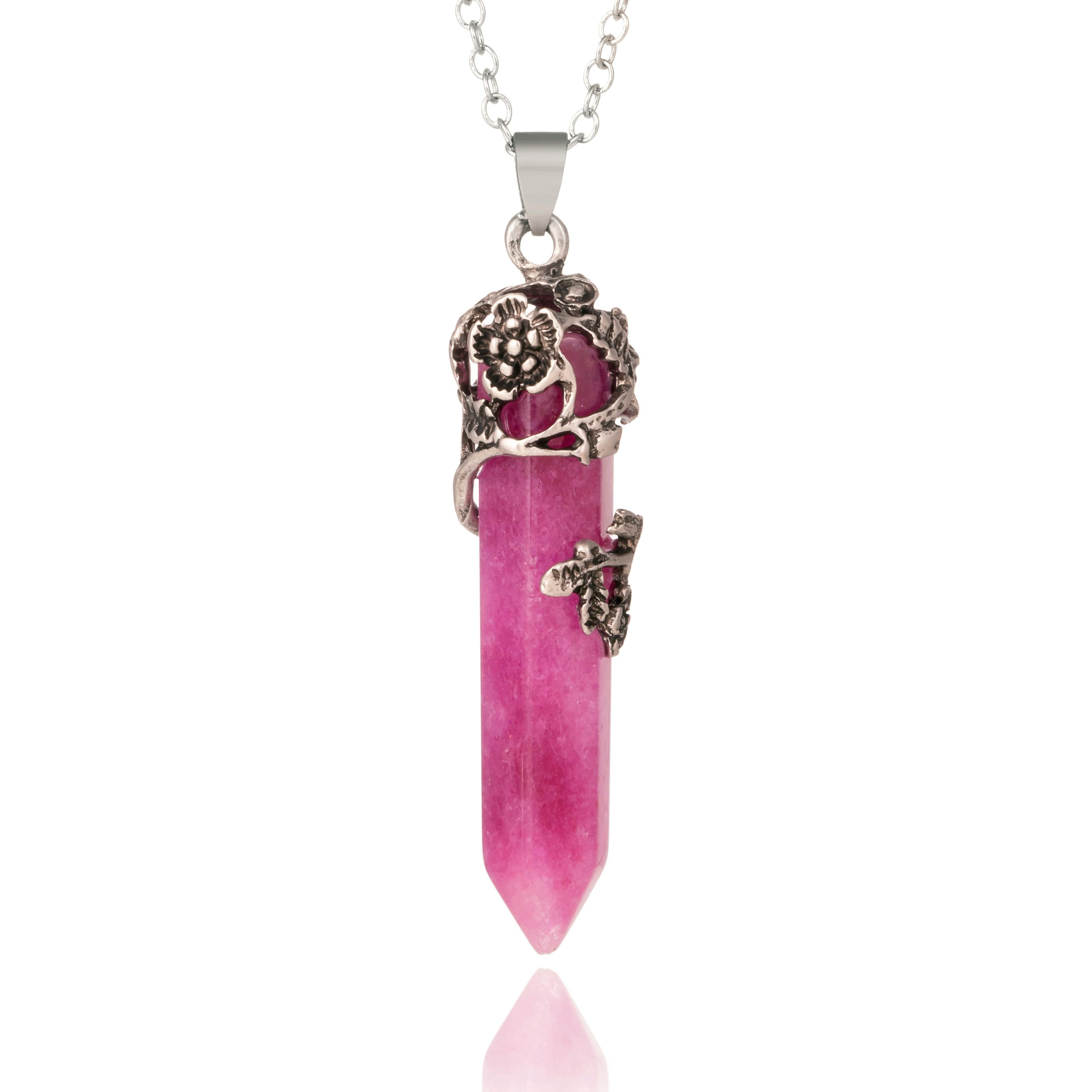 Home > 1pc Hexagonal Healing Synthetic Crystal Necklace Natural Prism Stone Pendant Flower Wrapped Pointed Quartz Yoga Energy With Chain