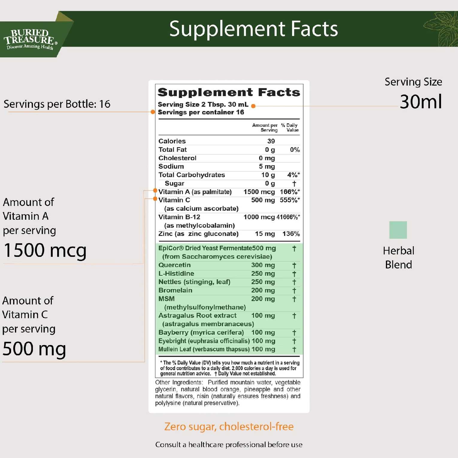- Vitamin A (as palmitate) 1500 mcg: Essential for maintaining healthy mucous membranes and supporting respiratory function.