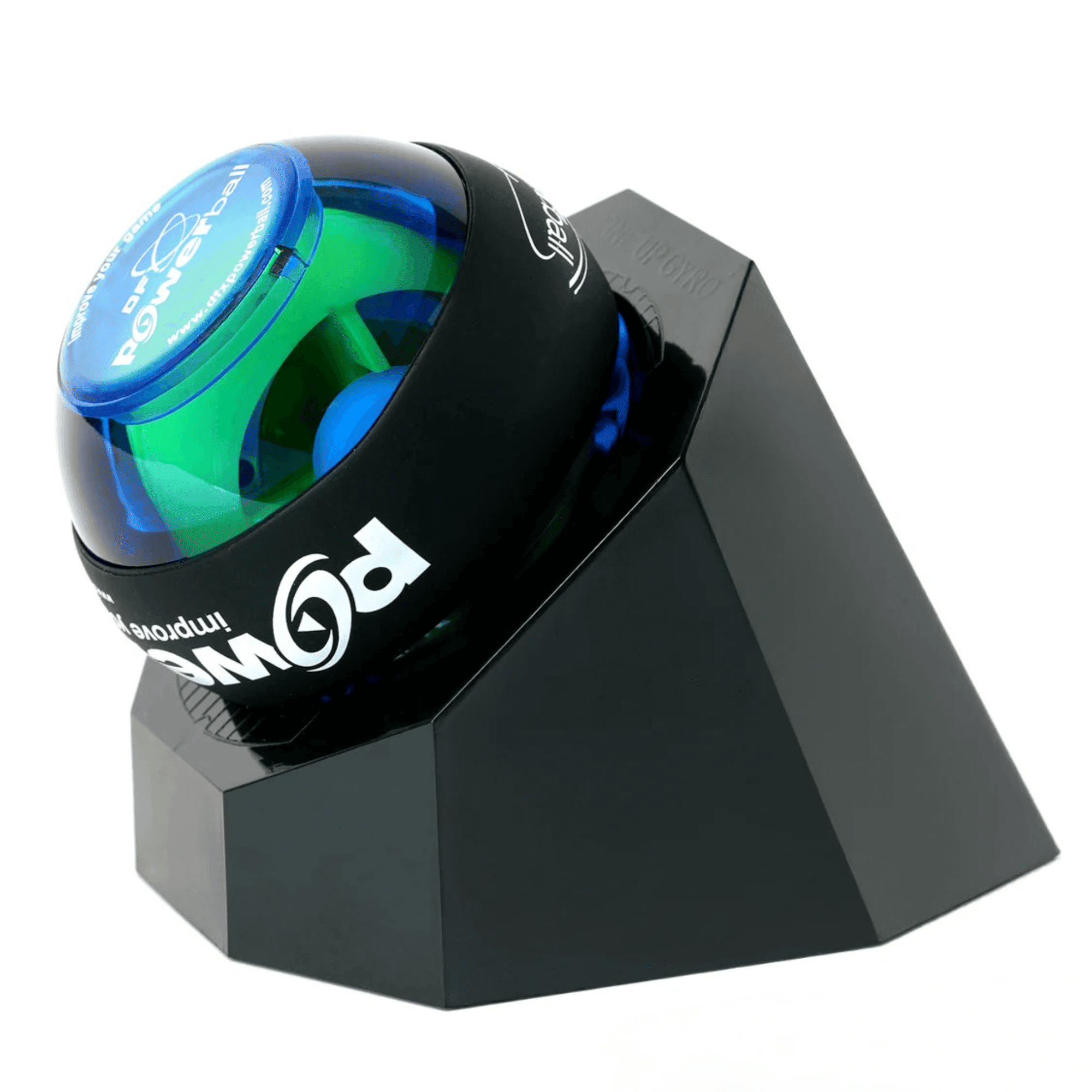 - The Lighted Powerball Blue Gyro Exerciser has a gyro speed of 15,500 rpm and provides dynamic resistance training that strengthens wrists, arms, and shoulders while being gentle on joints