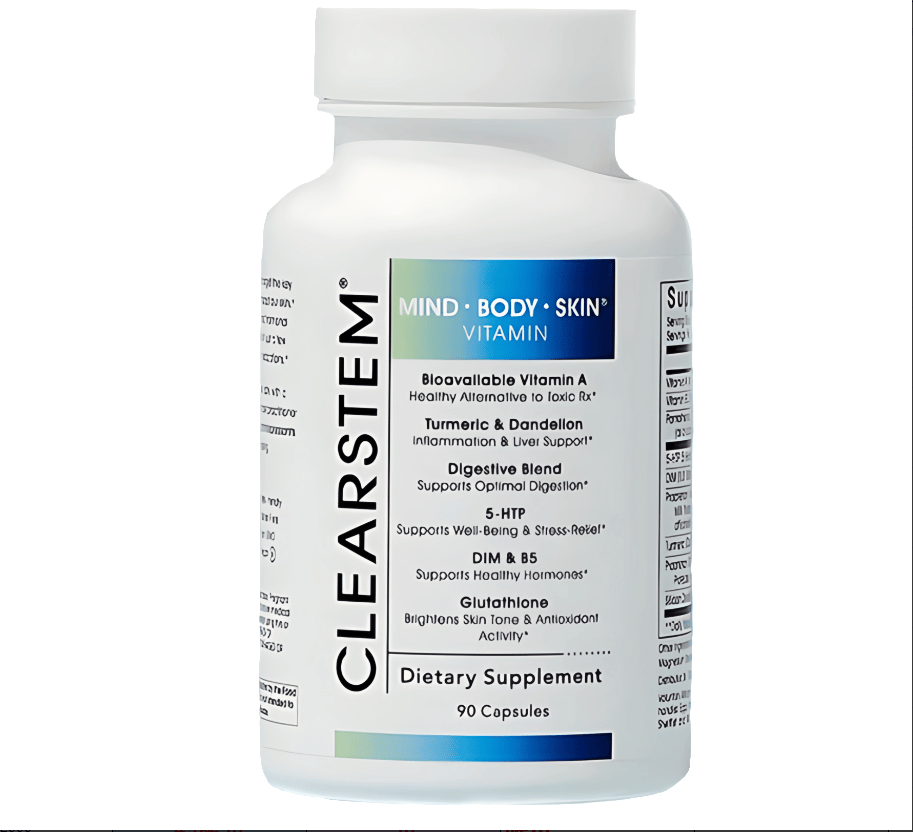 CLEARSTEM-MINDBODYSKIN Hormonal Acne Supplement With 5-HTP & DIM, Natural Skin Care Vitamins, Hormone Balance & Antioxidant Support, Bioavailable Vitamin A & Collagen, 90 Vegan Gluten-Cruelty-Capsules (30 Servings)