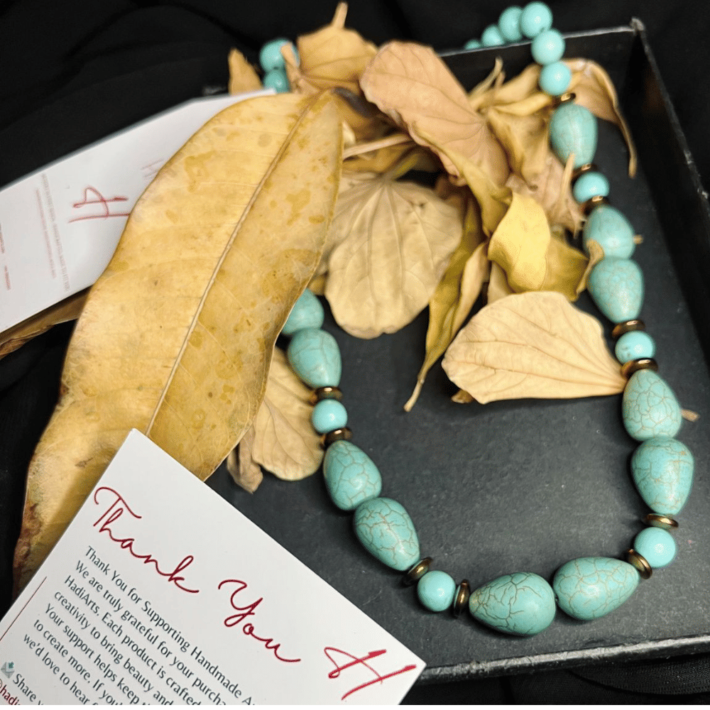 Add a touch of elegance and meaning to your style with this **handmade turquoise bead necklace**, crafted with high-quality natural turquoise stones featuring beautiful crackle patterns. Known as the **stone of calm and protection**, turquoise has been cherished for centuries for its soothing energy and timeless charm.