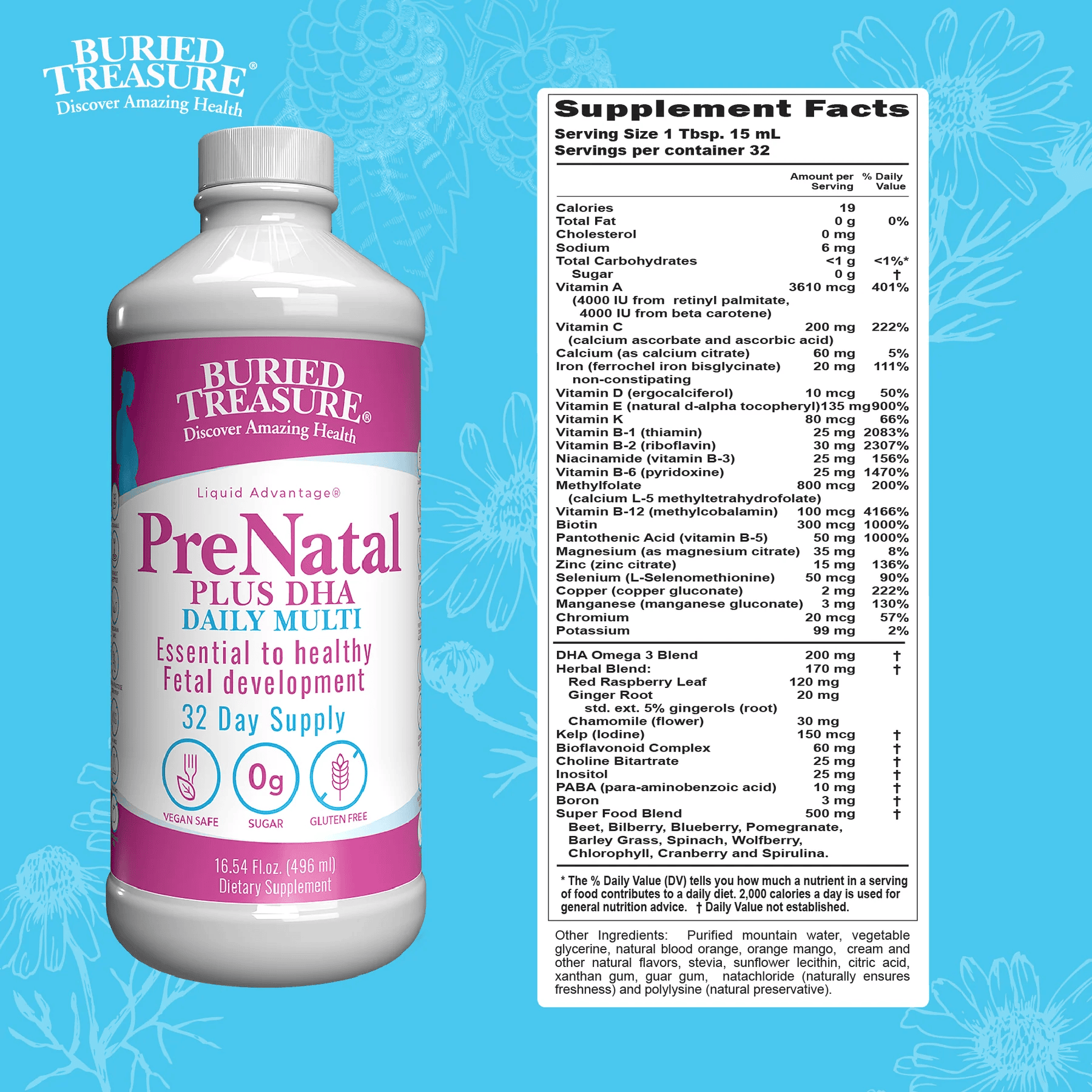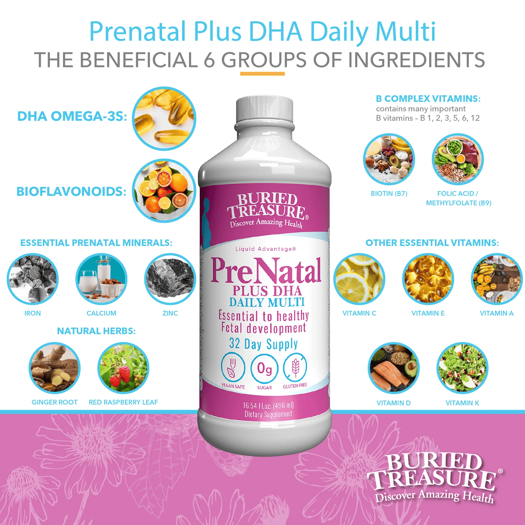 • Prenatal Plus DHA Daily Multi is a vegetarian-safe liquid supplement designed for prenatal care.