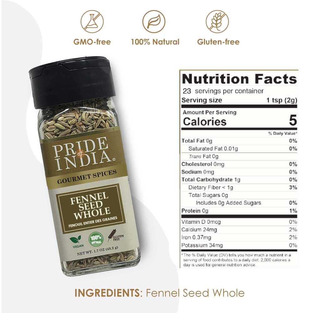 Pride of India – Fennel Seed Whole – Gourmet Spice – Fresh & Aromatic – Mouth Freshener – GMO/Gluten Free – Flavoring for bakes Pride of India – Fennel Seed Whole – Gourmet Spice – Fresh & Aromatic – Mouth Freshener – GMO/Gluten Free – Flavoring for bakes